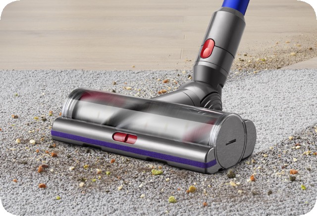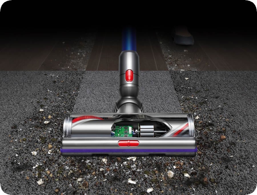 Самая мощная насадка Dyson для беспроводных пылесосов. Жесткие нейлоновые щетинки проникают глубоко в ворс ковра, удаляя въевшуюся грязь. Мягкие антистатические углеродные ворсинки собирают пыль с твердых полов и из щелей.