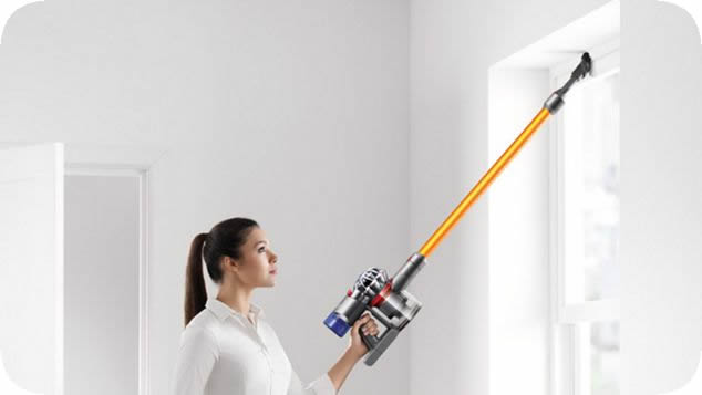 Пылесос Dyson V8 Absolute легкий и сбалансированный - подходит для уборки высоко расположенных поверхностей, между мебелью и под ней.