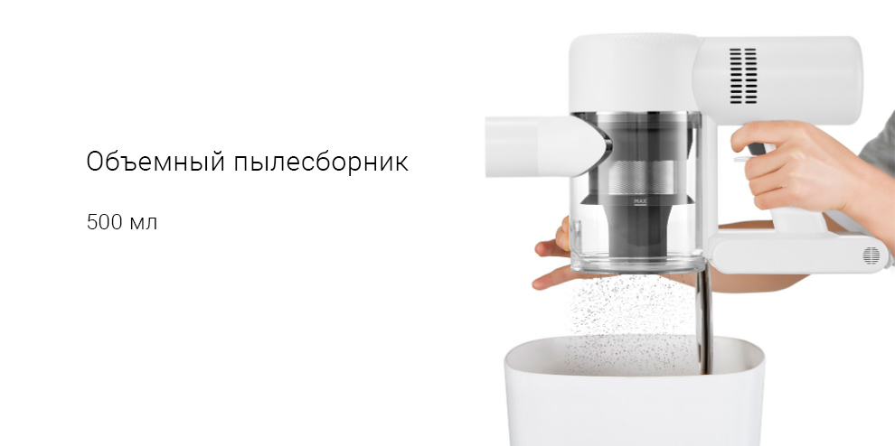 Емкость пылесборника составляет 500 мл. Чтобы удалить из него все содержимое, нужно всего лишь нажать одну кнопку.