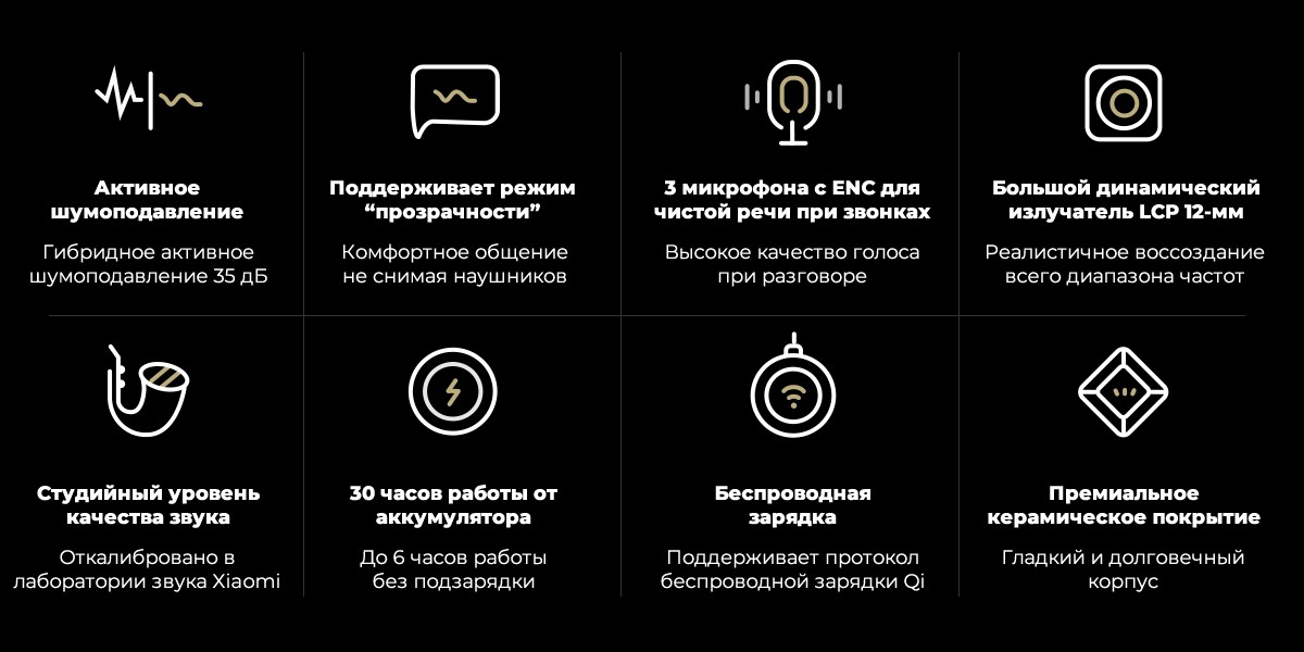 | Дополнительно | шумоподавление, прозрачный режим, голосовое управление, беспроводная зарядка |