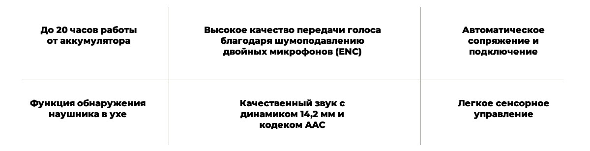 Каждый наушник оснащен двумя встроенными микрофонами высокой чувствительности, использующими технологию формирования лучей для устранения фонового шума во время звонков, чтобы собеседник мог четко слышать ваш голос даже в шумных местах.