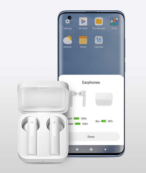 Современный быстрый интерфейс Bluetooth 5.0 связи обеспечивает быстрое соединение и передачу данных. Беспроводные наушники Xiaomi Mi True Wireless Earphones 2 Basic используют пользовательский интерфейс MIUI Global. При открытии футляра появляется интерфейс подключения наушников. После подключения наушниками можно с удобством управлять с телефона, а также просматривать на нем уровень заряда аккумулятора и футляра.