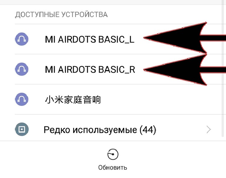 - Зайдите в настройки Bluetooth устройства к которому необходимо подключить наушники. В доступных устройствах появится MI AIRDOTS BASIC_R – это и есть ваши наушники.