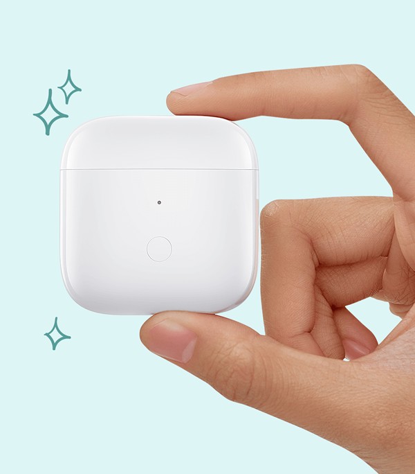 Совершенно новый компактный чехол для зарядки отличается плавными, закругленными контурами и жесткими краями для более удобного захвата. Глянцевая отделка облегчает очистку корпуса.