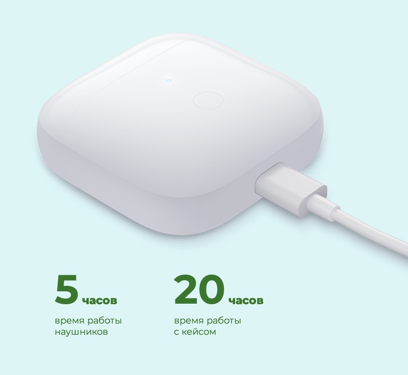 Несмотря на небольшой и легкий вес, Redmi Buds 3 обеспечивают не только мощность, но и комфорт. Наслаждайтесь до 5 часов автономной работы от одного заряда или до 20 часов работы в паре с зарядным чехлом. Расслабьтесь и вернитесь к своей музыке. Наслаждайтесь воспроизведением до 1,5 часов после всего лишь 10-минутной зарядки.