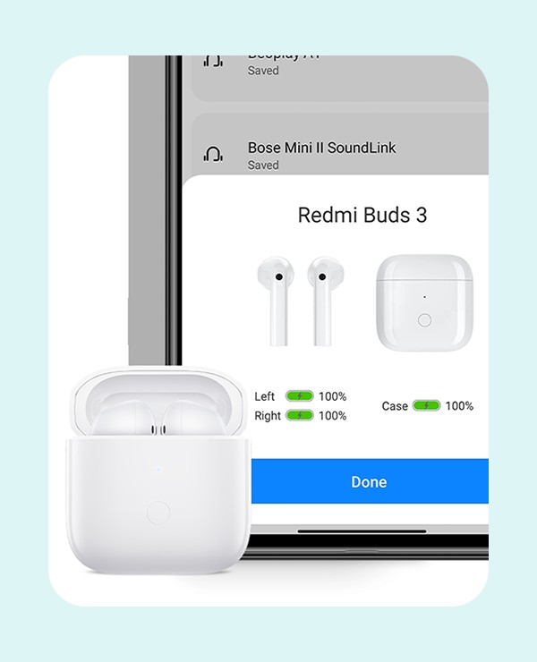 Эксклюзивное всплывающее окно MIUI для быстрого подключения позволяет быстро выполнять сопряжение устройств. Просто откройте чехол для зарядки рядом со смартфоном и коснитесь экрана, когда появится всплывающее окно. Уровень заряда батареи наушников и чехла для зарядки можно сразу увидеть на экране.