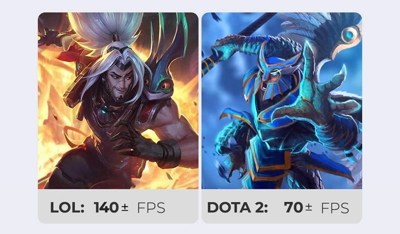 Мощная видеокарта Asus Radeon RX550. Показатели в играх достигают: в GTA 5 до 100 fps, в Dota 2 до 70 fps, в League of Legends до 140 fps.