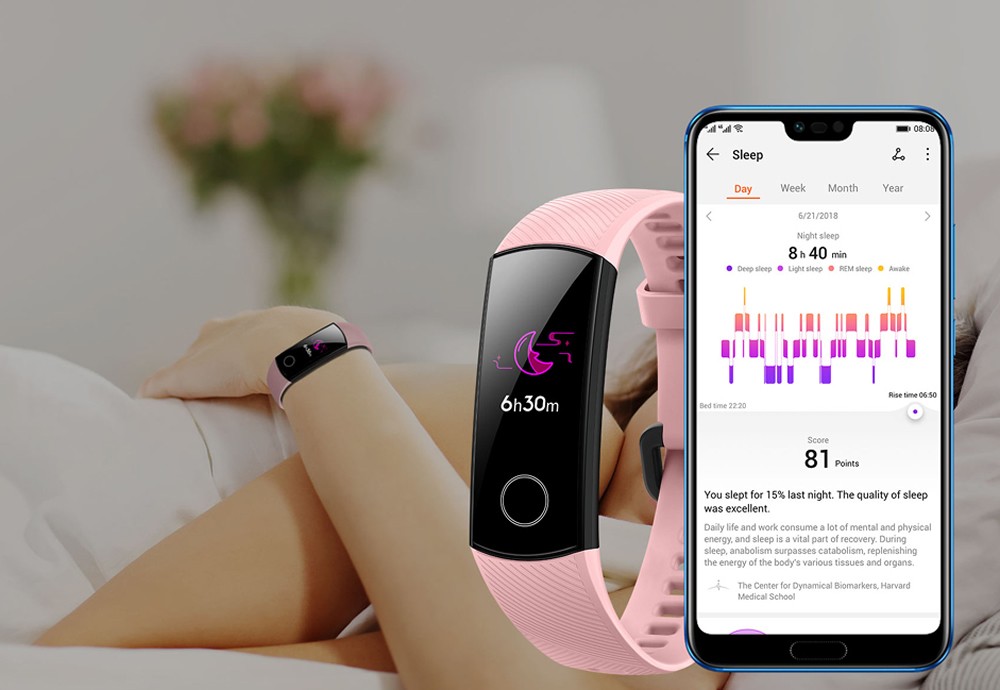 Применение технологии мониторинга для анализа качества вашего сна Huawei TruSleep, контроль засыпания точен более чем на 95%.