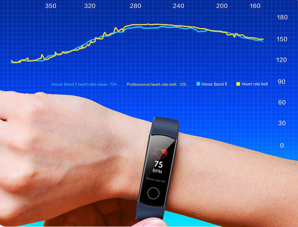 Благодаря полноэкранному дисплею, выполненному полностью из стекла 2,5 D, циферблат трекера Honor Band 5 отличается прочностью и устойчивостью к царапинам.