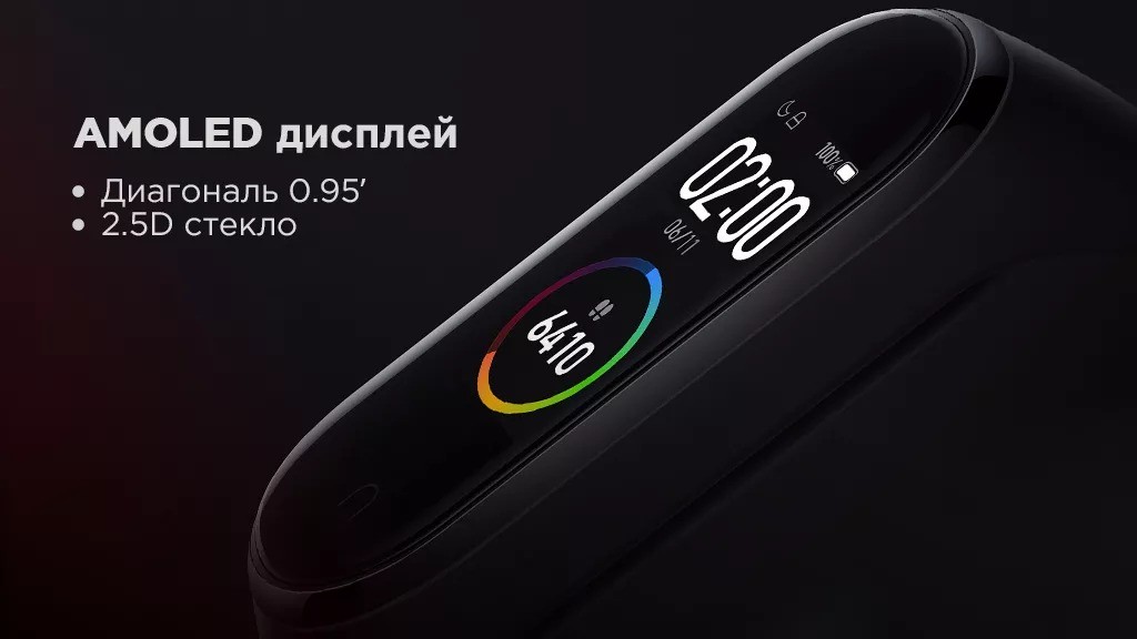 Дисплей получил AMOLED-матрицу и диагональ 0,95 дюйма. Изображение лучше просматривается на ярком солнце, а размер экрана позволил расширить функционал браслета.