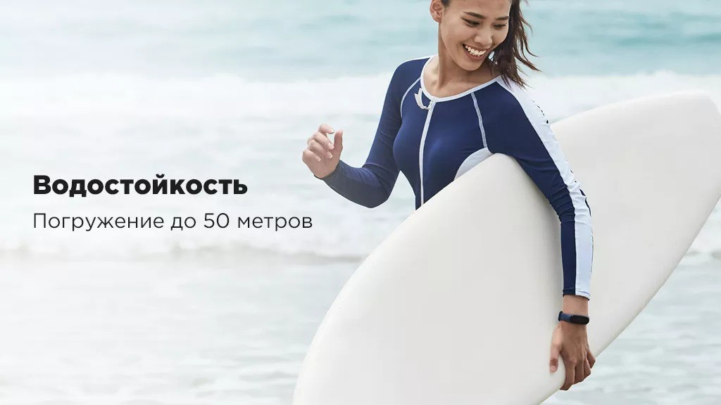 С новым Mi Band можно плавать без опаски. Производитель повысил класс защиты от пыли и воды до IP68, что гарантирует полную пыленепроницаемость и возможность плавания на глубине до 50-ти метров.