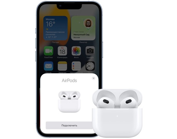 Поместите AirPods рядом с iPhone или iPad и коснитесь кнопки "Подключить" для соединения наушников сразу со всеми устройствами в вашей учётной записи iCloud. Так вы сможете, например, ответить на звонок с iPhone, пока слушаете музыку на Mac, — и переключаться между устройствами не придётся.