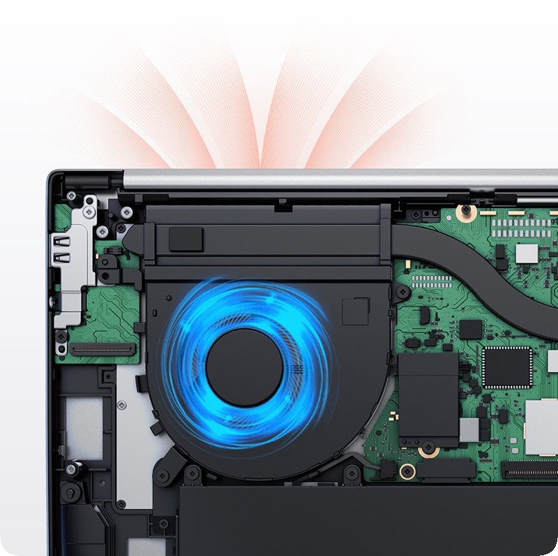 RedmiBook 14" II имеет 8 мм теплоотводную трубку для максимального отвода тепла и мощный охлаждающий кулер.
