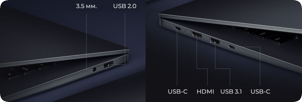| Разъемы | USB Type-C x 2, USB 2.0 x 1, USB 3.1 x 1, HDMI x 1, аудиоразъем 3,5 мм |