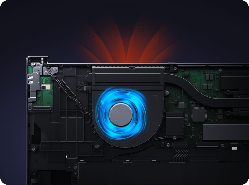 RedmiBook 16" имеет 8 мм теплоотводную трубку для максимального отвода тепла и мощный охлаждающий кулер.