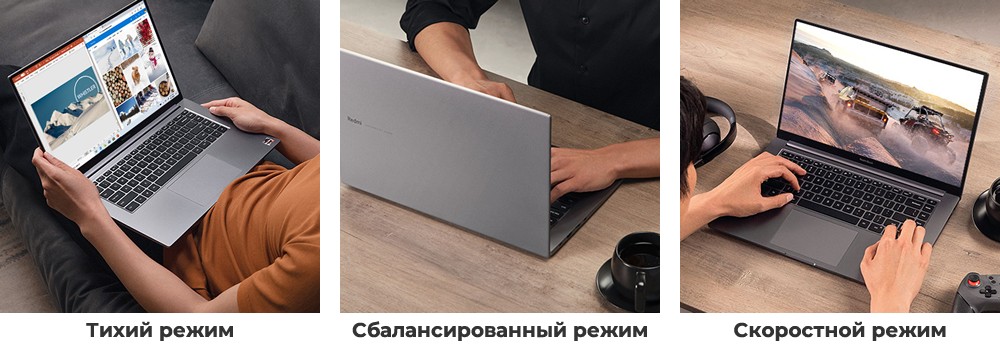 В ноутбуке можно назначить три умных режима работы системы с помощью комбинации клавиш FN и K (клавиша), в зависимости от поставленных задач: "Тихий", "Сбалансированный" и "Скоростной", соответственно для обычных задач, офисной работы и игр.