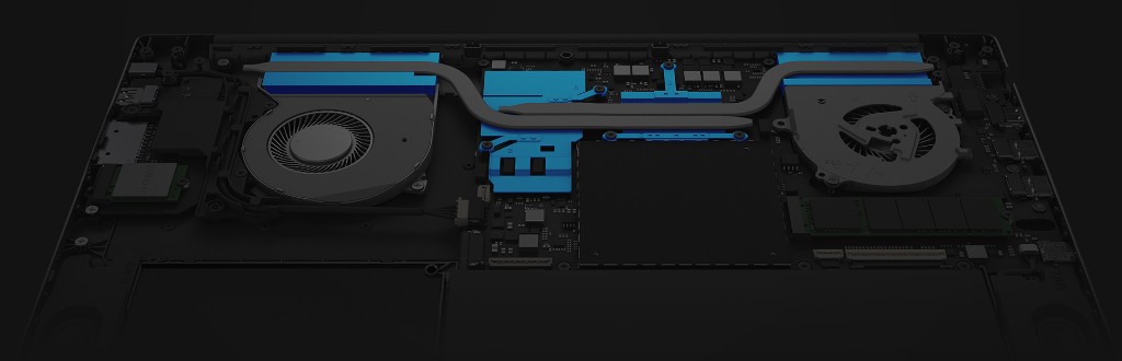В Xiaomi Mi Notebook повышенное внимание уделялось не только внешности, но и внутреннему наполнению. Система охлаждения с двумя вентиляторами и двумя вентиляционными отверстиями гарантирует эффективный отвод тепла для стабильно высокой производительности, когда Вы уже с головой погрузились в работу или развлечения. Два вентилятора, 2 + 2 тепловодные трубки, два вентиляторных отверстия.
