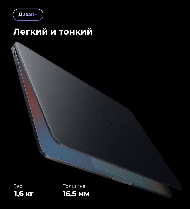 Толщина Xiaomi Mi Notebook Pro X 14 составляет 16,5 мм, а вес 1,6 кг. Ультратонкий корпус имеет серую цветовую гамму, а ощущения от прикосновения легкие и приятные.