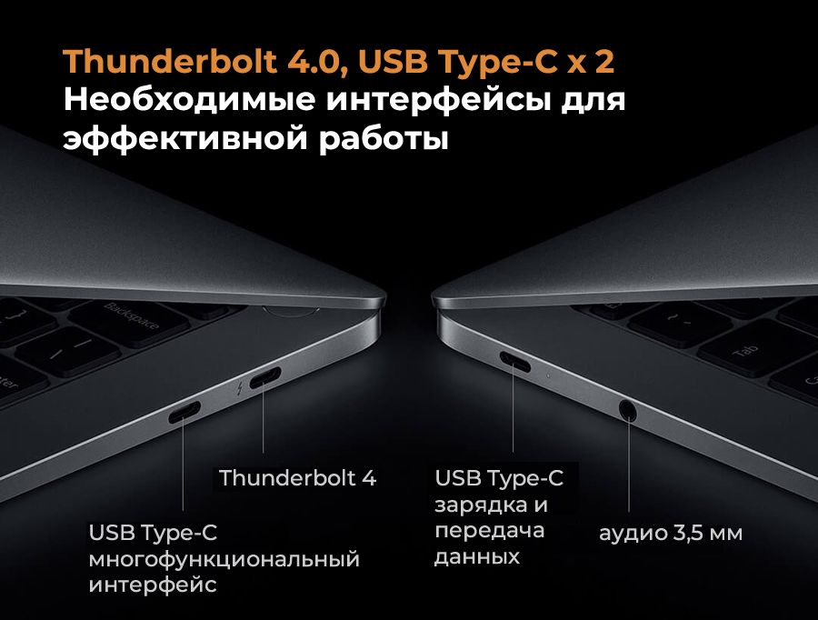 | Разъемы | Thunderbolt 4 & USB Type-C x 1, USB Type-C x 1, аудиоразъем 3,5 мм |