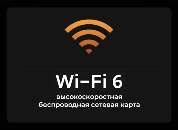 Ноутбук поддерживает сетевой протокол 802.11ax Wi-Fi 6, а также 802.11 a/b/g/n/ac, который работает на частотах 2,4 ГГц и 5 ГГц в двухдиапазонном режиме. Максимальная скорость передачи данных может достигать до 2,4 Гб/сек.