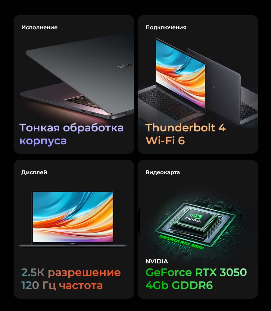 Качественное исполнение и высокопроизводительные комплектующие: процессор Tiger Lake от Intel одиннадцатого поколения Core i7 11370H, видеокарта NVIDIA GeForce RTX 3050 4Gb GDDR6, высокая скорость передачи данных c Wi-Fi 6. Super Retina дисплей с разрешением 2.5К (2560 x 1600 пикселей) и частотой обновления 120 Гц, мощный аккумулятор 56 Вт/ч с зарядкой 130 Вт. Корпус из алюминиевого сплава, интерфейс Thunderbolt 4, PCIe 4.0, современные разъемы. Все для того, чтобы двигаться вперед!