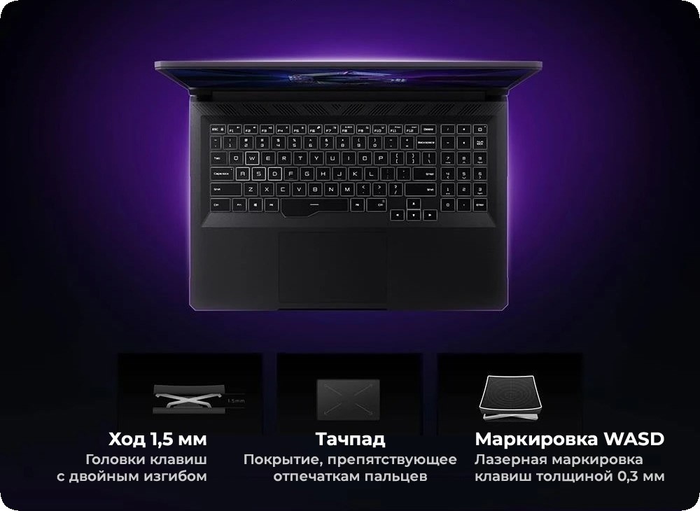 Большой 16,1" дисплей с разрешением 1920 × 1080 пикселей и углом обзора 178° дает поразительную картинку и поможет полностью погрузиться в происходящее благодаря узким рамкам с трех сторон. Охватывая 100% цветового пространства sRGB, он передает самые точные цвета и мельчайшие оттенки как в играх, так и при работе с графикой. Имеет антибликовое покрытие и обладает яркостью до 300 нит.