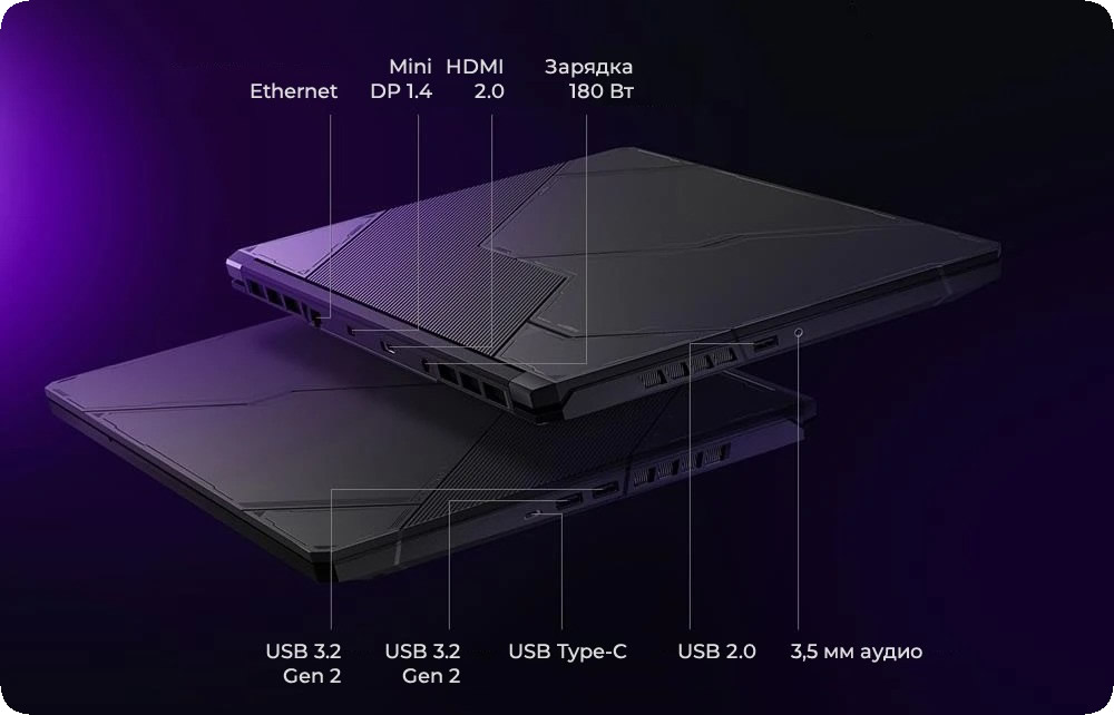 | Разъемы | USB Type-C x 1, USB 2.0 x 1, USB 3.2 x 2, HDMI x 1, mini-DisplayPort 1.4, Ethernet x 1, аудиоразъем 3,5 мм |