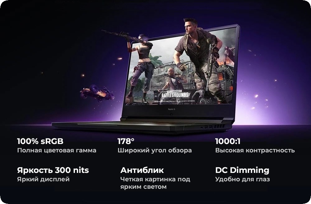 Полностью черный корпус Redmi G создан с помощью высокоточной лазерной 3D-гравировки. Выполненный в стиле футуристичной брони, ноутбук имеет приятное на ощупь покрытие. Неповторимый внешний вид корпуса и его объемные линии с четырех сторон подчеркивают технологичность гаджета с разных ракурсов.
