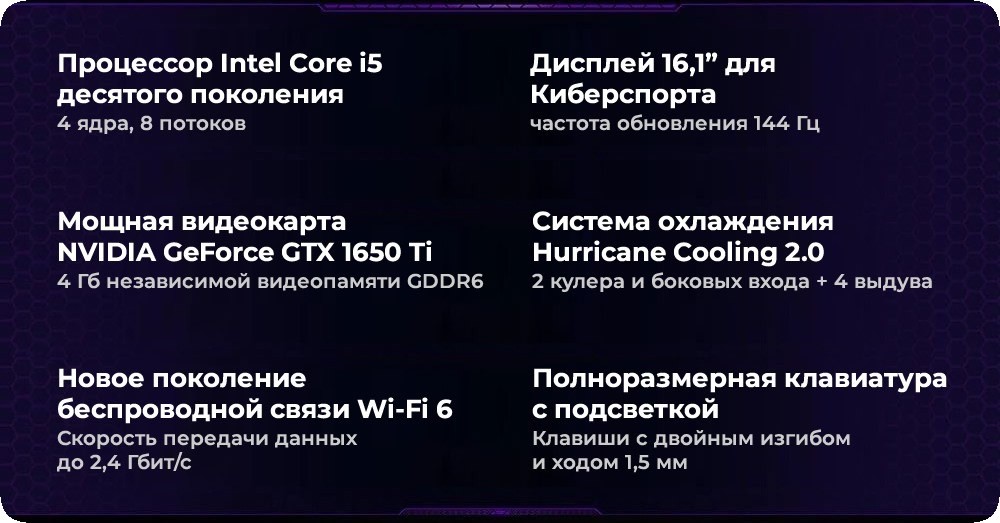 | Видеокарта | NVIDIA GeForce GTX1650 Ti |