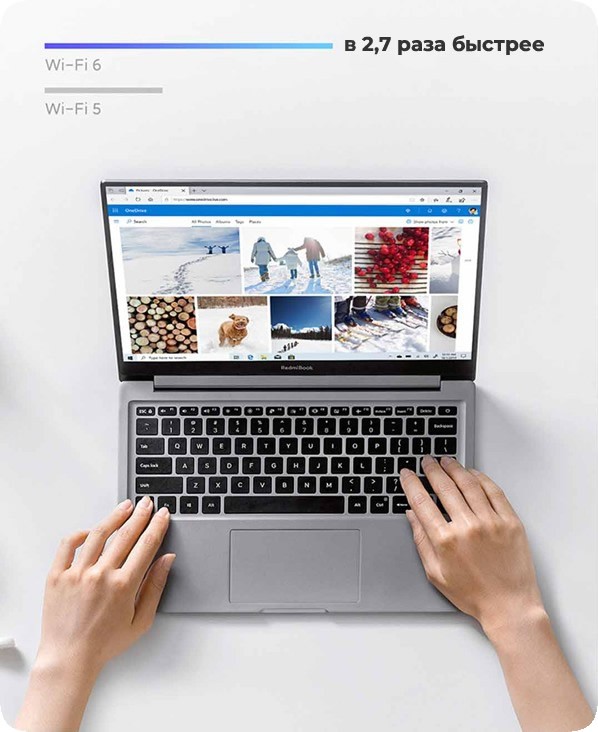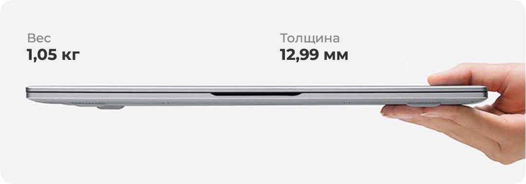 Новое поколение RedmiBook Air 13" имеет легкий и тонкий металлический корпус, обработанный пескоструйным процессом. Его вес всего лишь 1,05 кг, а толщина до 12,99 мм. Даже женщина легко сможет держать ноутбук в одной руке. Открыть его, это как открыть журнал.