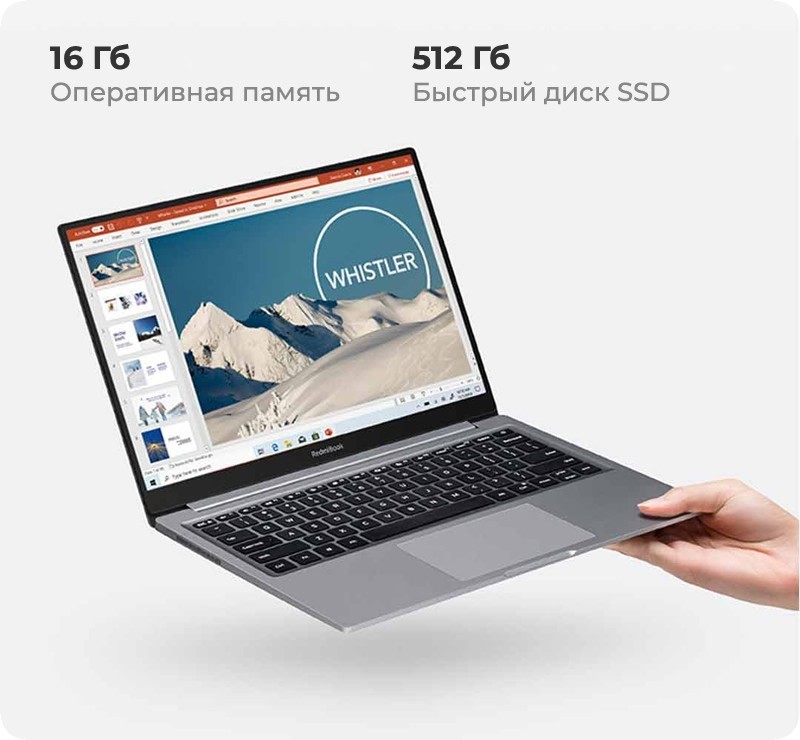 В ноутбук RedmiBook Air 13" установлены 16 Гб оперативной памяти и высокоскоростной диск SSD на 512 Гб. Высокая скорость передачи файлов, документов, изображений, видео. Используйте большое пространство для хранения. Храните все что нужно.