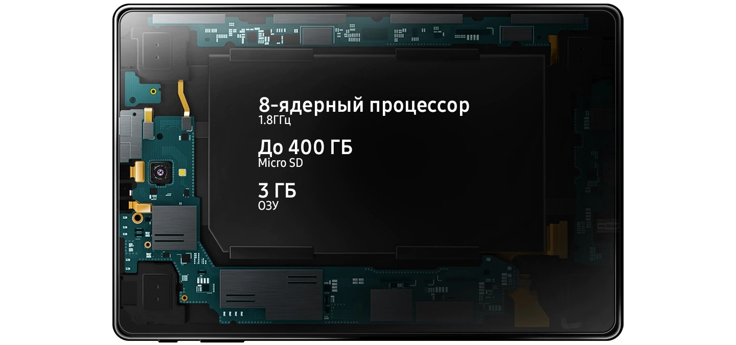 Благодаря новому процессору и 3 ГБ оперативной памяти в Galaxy Tab A (2018, 10.5) удалось достичь высокой производительности и плавности работы. Кроме того, в планшете имеется 32 ГБ встроенной памяти и слот для micro SD карты, позволяющий расширить память планшета до 400 ГБ для хранения больших видеофайлов HD формата.