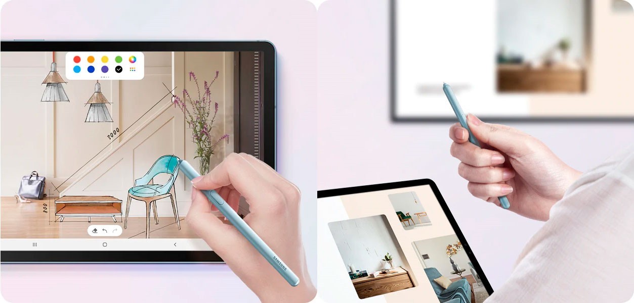 Перо S Pen распознаёт нажатия и наклоны — это позволяет создавать на планшете рисунки, скетчи и иллюстрации на самом профессиональном уровне. С помощью пера можно перелистывать слайды в презентациях или фотографии в галерее и даже управлять воспроизведением музыки и видео. И всё это — дистанционно, с помощью жестов на расстоянии до 10 метров. А с помощью небольшого магнитного выступа электронное перо удерживается на задней панели планшета, чтобы вы всегда могли быстро записать свои мысли и идеи. S Pen начинает автоматически заряжаться в момент фиксации его на корпусе планшета.