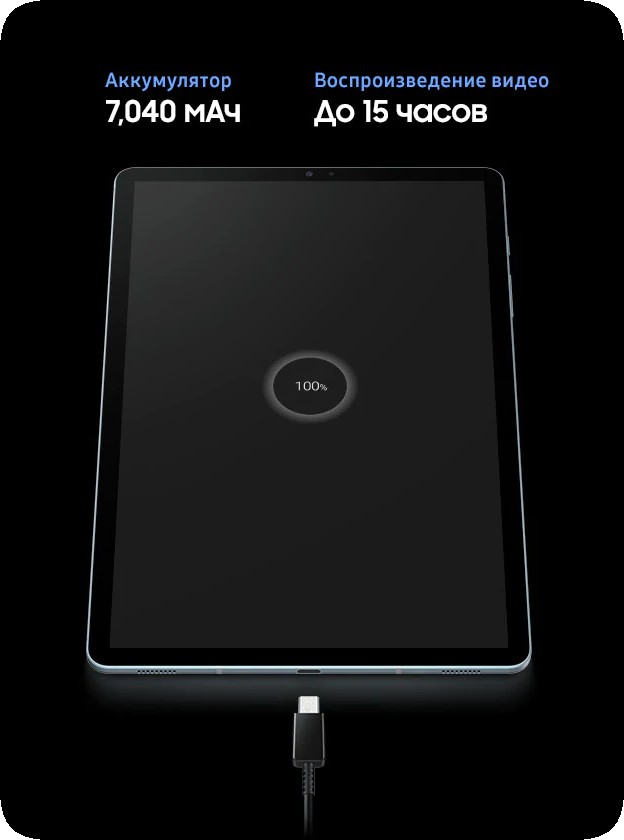 Не волнуйтесь, что планшет разрядится в считанные часы от активной работы. Батарея на 7040 мА/ч готова держать заряд до двух суток, а заряжается менее чем за 2,5 часа.