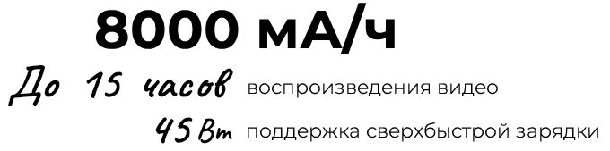 | Параметры аккумулятора | поддержка быстрой зарядки, 45 Вт |