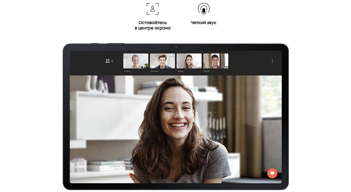 Переверните планшет в альбомный режим для видеозвонка и ваше изображение на экране будет расположено точно по центру. Когда вы говорите ваш голос отчетливо слышен благодаря 3-м микрофонам, встроенным вокруг дисплея.