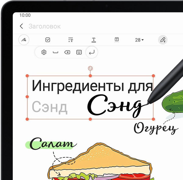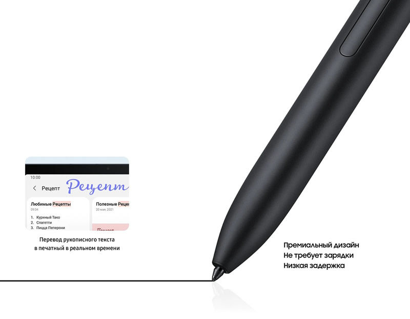 Входящее в комплект электронное перо S Pen обеспечивает естественный уровень письма благодаря низкой задержке и мягкому наконечнику. Более того, S Pen превращает рукописный текст в печатный в режиме реального времени и позволяет редактировать текст простыми жестами. Когда вы закончите, просто прикрепите электронное перо к боковой грани с помощью магнита для удобной переноски. А о зарядке можно забыть, для S Pen она не нужна.