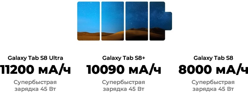 Мощный интеллектуальный аккумулятор позволит вам с легкостью устраивать киномарафоны, а поддержка супербыстрой зарядки 45 Вт в считанные минуты вернет вашему планшету 100% зарядки.