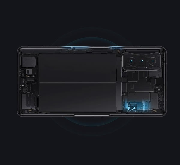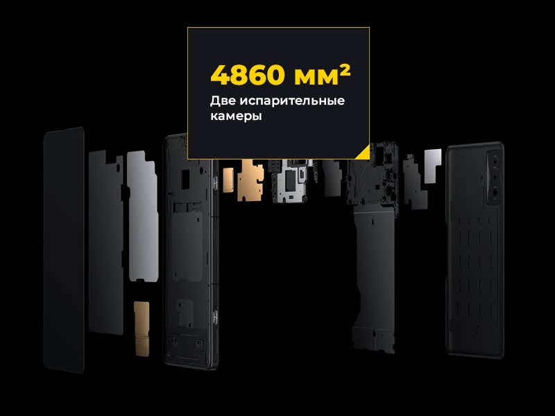 Благодаря двум испарительным камерам (испарительная камера нового поколения из нержавеющей стали и трёхмерная ступенчатая испарительная камера), а также сверхбольшой графеновой пластине площадью 6904 мм², трёхмерному графиту высокой мощности и другим инновационным материалам, тепло эффективно выводится наружу через каждый слой. Мощная терморегуляция позволяет процессору полностью реализовывать свой потенциал!