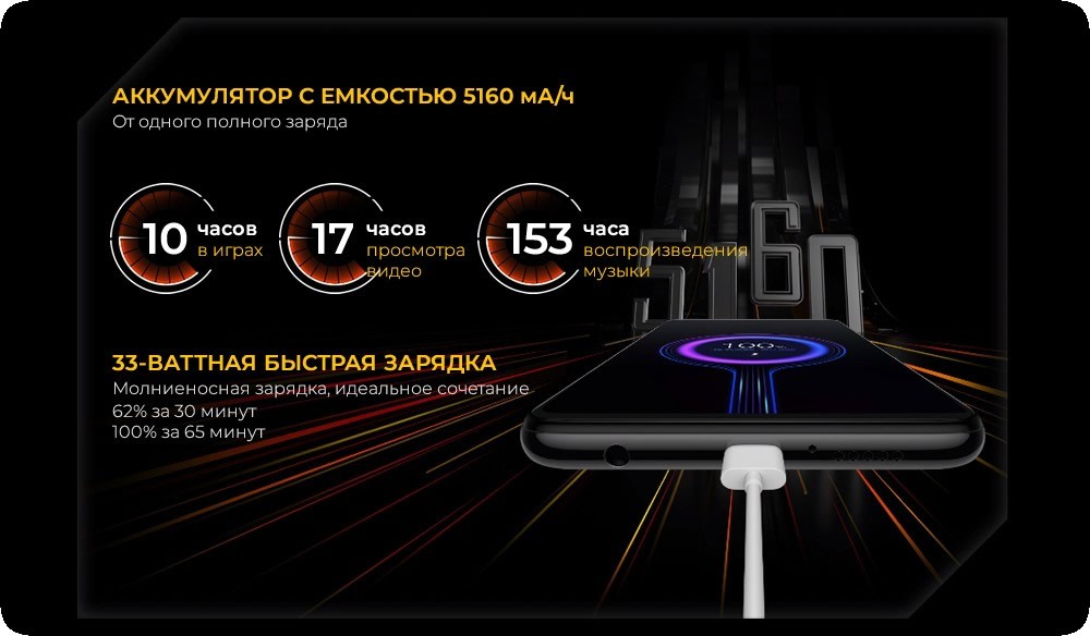 | Параметры аккумулятора | поддержка быстрой зарядки, 33 Вт |