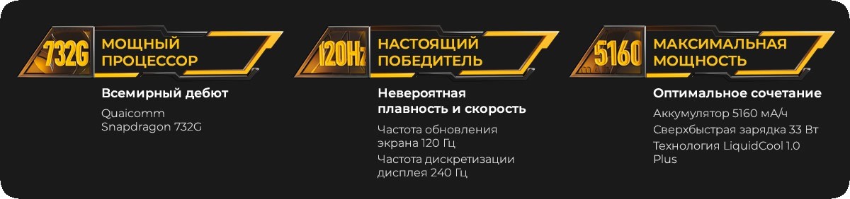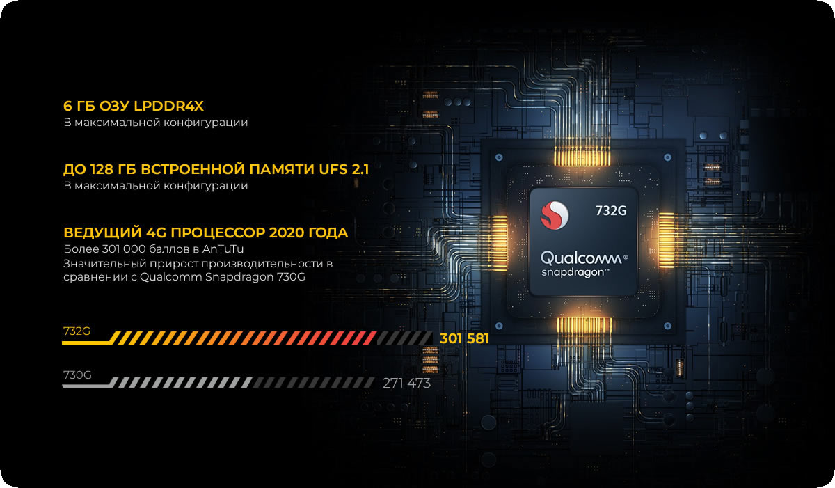 | Процессор | Qualcomm Snapdragon 732G, 8 ядер |