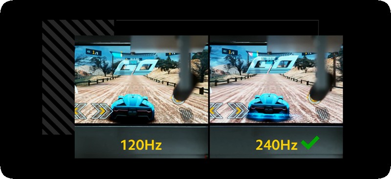 Увеличение скорости отклика на 100 % в сравнении с устройствами с частотой дискретизации 120 Гц. Время отклика дисплея с частотой дискретизации 240 Гц составляет всего 4,16 мс.