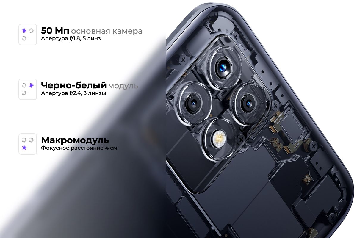 Realme 8i имеет уникальную отделку, шелковистую на ощупь. Ловите свет и выделяйтесь из толпы, продемонстрируйте свой стиль. Черный или фиолетовый цвет - выбор за вами.
