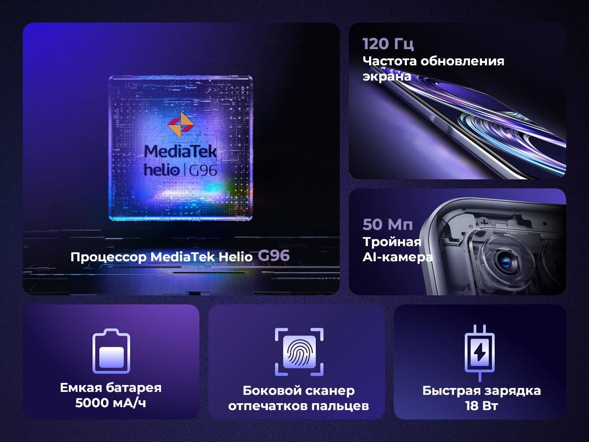 | Процессор | MediaTek Helio G96, 8 ядер |
