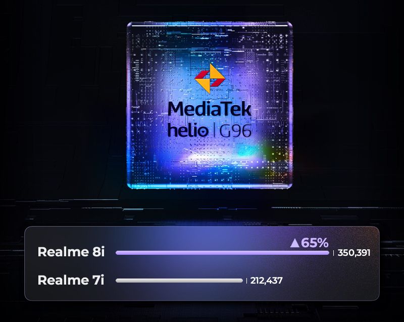 Realme и MediaTek объединились для создания сверхмощного процессора. Тактовая частота обновленного процессора достигает 2,05 ГГц. Сочетание ARM Cortex-A76 и Cortex-A55 обеспечивает плавный и визуально потрясающий игровой процесс.