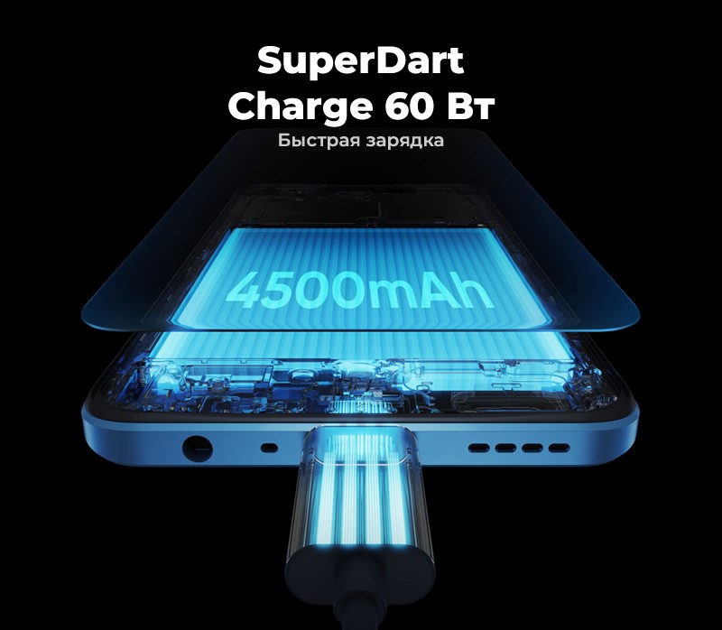 Быстрая зарядка SuperDart Charge 60 Вт зарядит ваш смартфон на 50% всего за 15 минут.