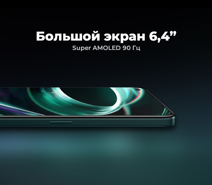Большой экран 6,4 дюйма обеспечивает превосходную точность цветопередачи. Высокая частота обновления 90 Гц улучшает плавность визуального опыта и позволяет повысить разрешение экрана.