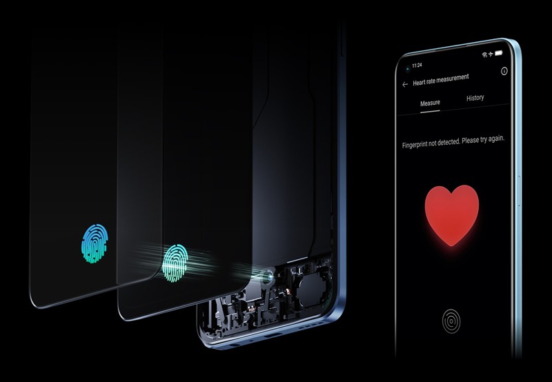 Впервые Realme 9 Pro+ включает в себя встроенный в дисплей сканер отпечатков пальцев, который одновременно служит датчиком сердечного ритма. Теперь можно легко разблокировать телефон и измерить частоту сердечного ритма.