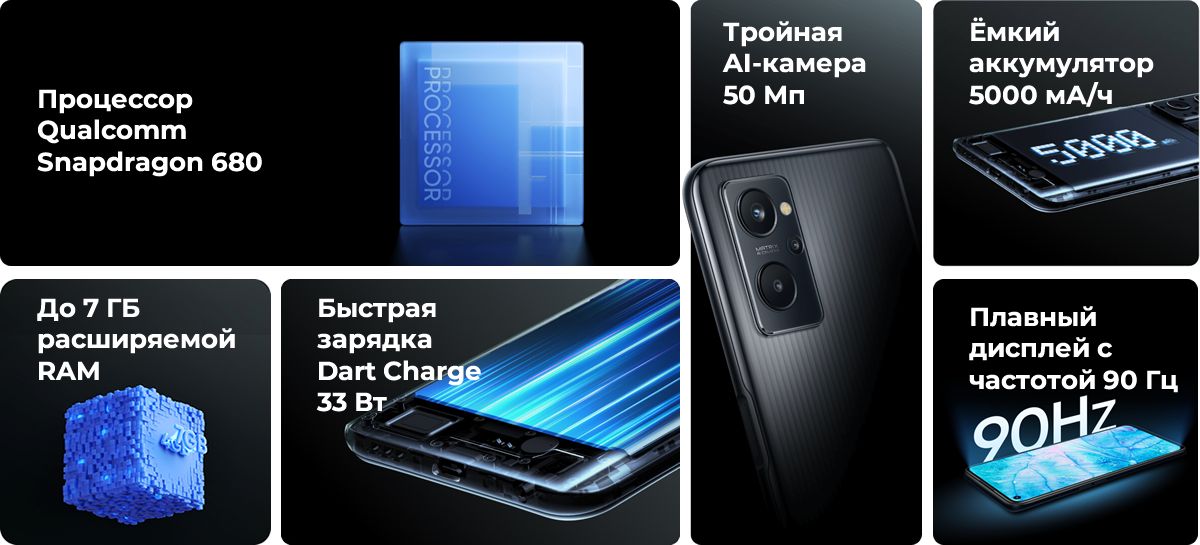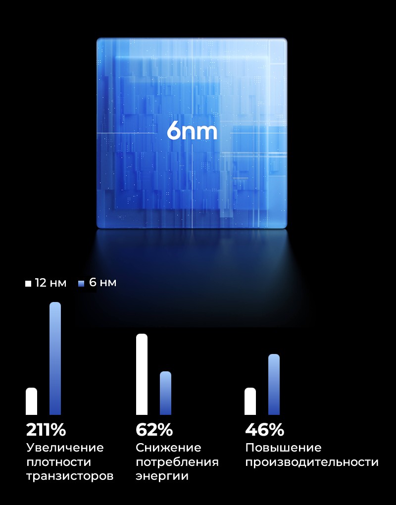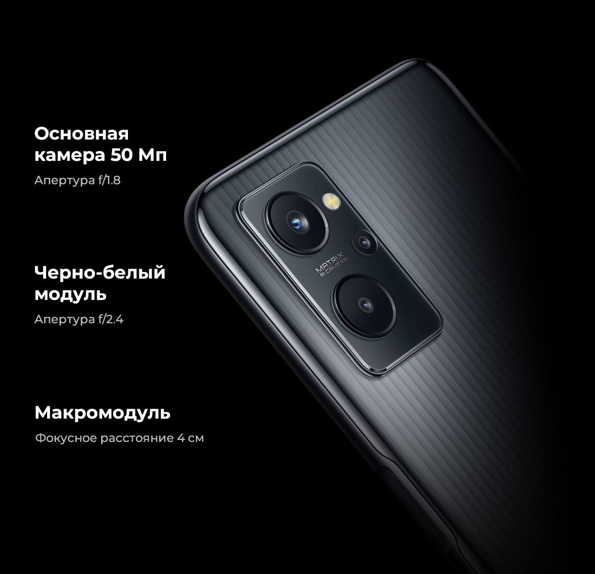 Низкое энергопотребление и высокую производительность смартфону Realme 9i обеспечивает 114 миллионов транзисторов на квадратный миллиметр.
