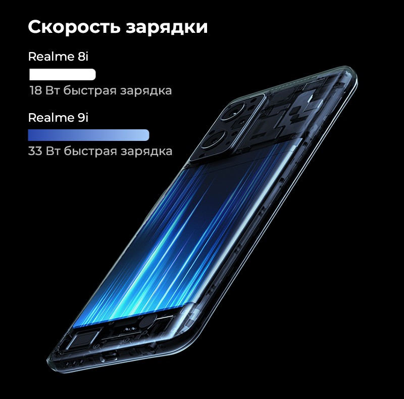 Realme 9i заряжается на 36% быстрее, чем Realme 8i. Смартфон оснащен пятиступенчатой защитой, обеспечивая более быструю и безопасную зарядку.